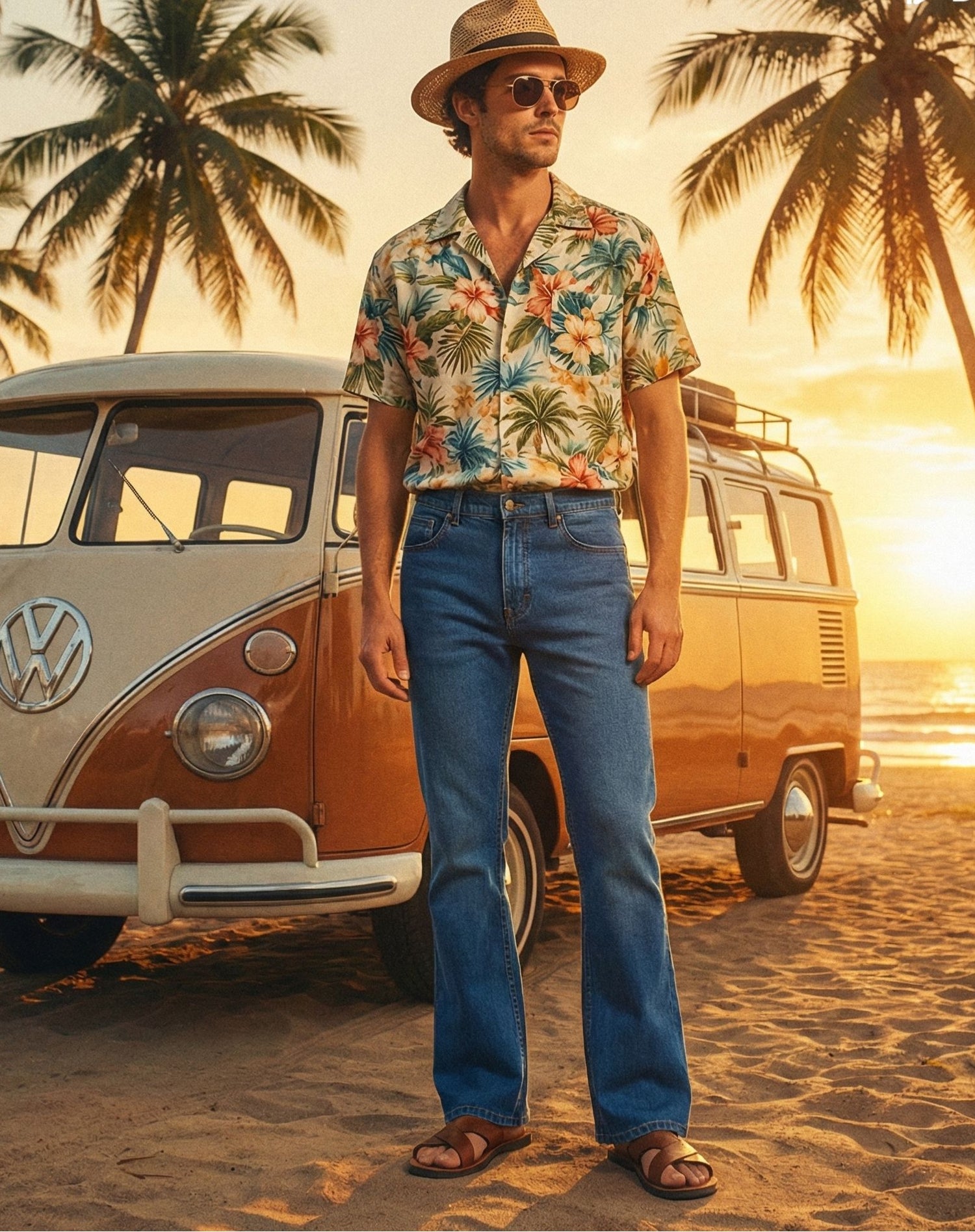 Pantalones de mujer flare estilo setentas con bolsillos de plastón. Tejido elástico...